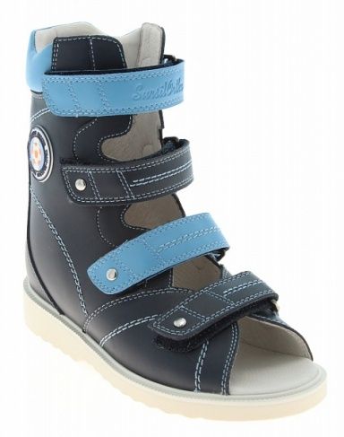 Сандалии изготавливают из нат.кожи. Обеспечивают их жесткой задней частью и берцами, которые отлично поддерживают стопы при их отклонениях. Высокий берец необходим для иммобилизации движения голеностопа. Это дает возможность суставам развиваться правильно или предотвращает развитие деформаций, эффект достигается при регулярном ношении.