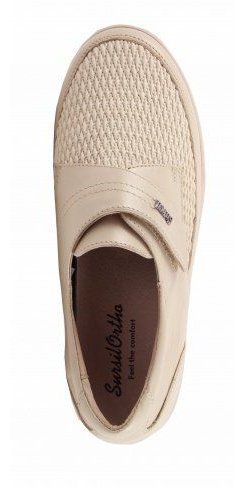 Обувь оснащена съемной комфортной ортопедической стелькой. Предназначена для женщин имеющих деформации переднего отдела стопы(в частности молоткообразная деформация пальцев) или повышенную полноту. Допускается ношение при сахарном диабете.