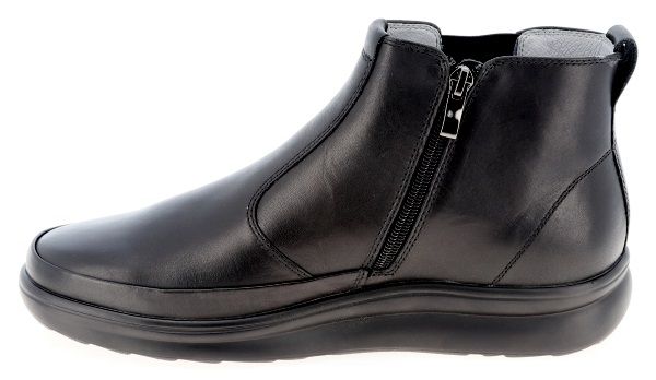 Полуботинок снабжен несколько большей чем обычно уплотненной задней частью, сформированной из термопласта. Она позволяет надежно фиксировать пяточную область в естественном положении, к тому же задник держит форму достаточно долгое время. Изнутри ботинки достаточно широки, а вставка из трикотажа отлично растягивается, что позволяет добавить в обувь орто-стельку, индивидуально изготовленную.